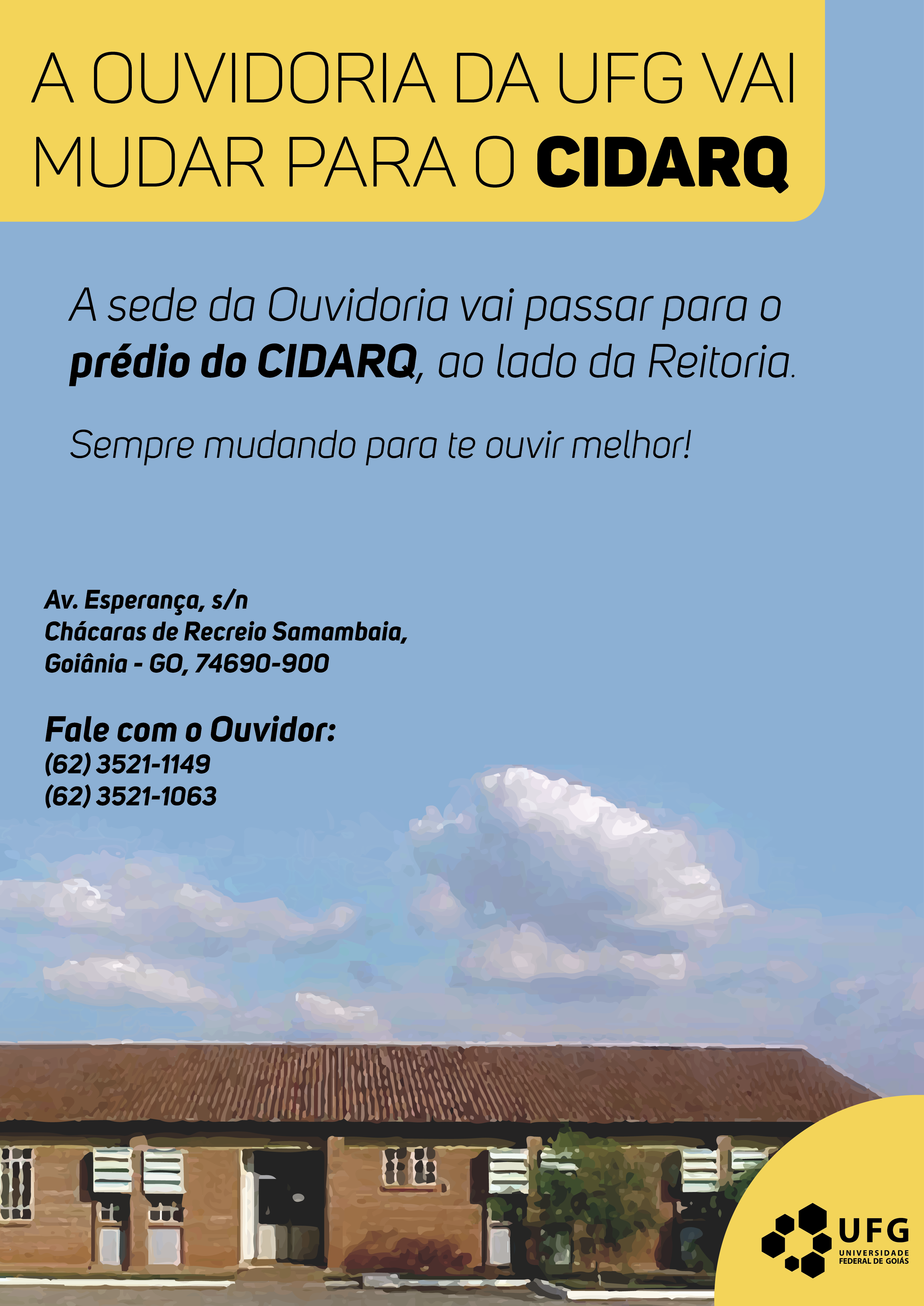 A Ouvidoria a UFG mudou de local, agora o atendimento está sendo realizado no prédio do CIDARQ.
