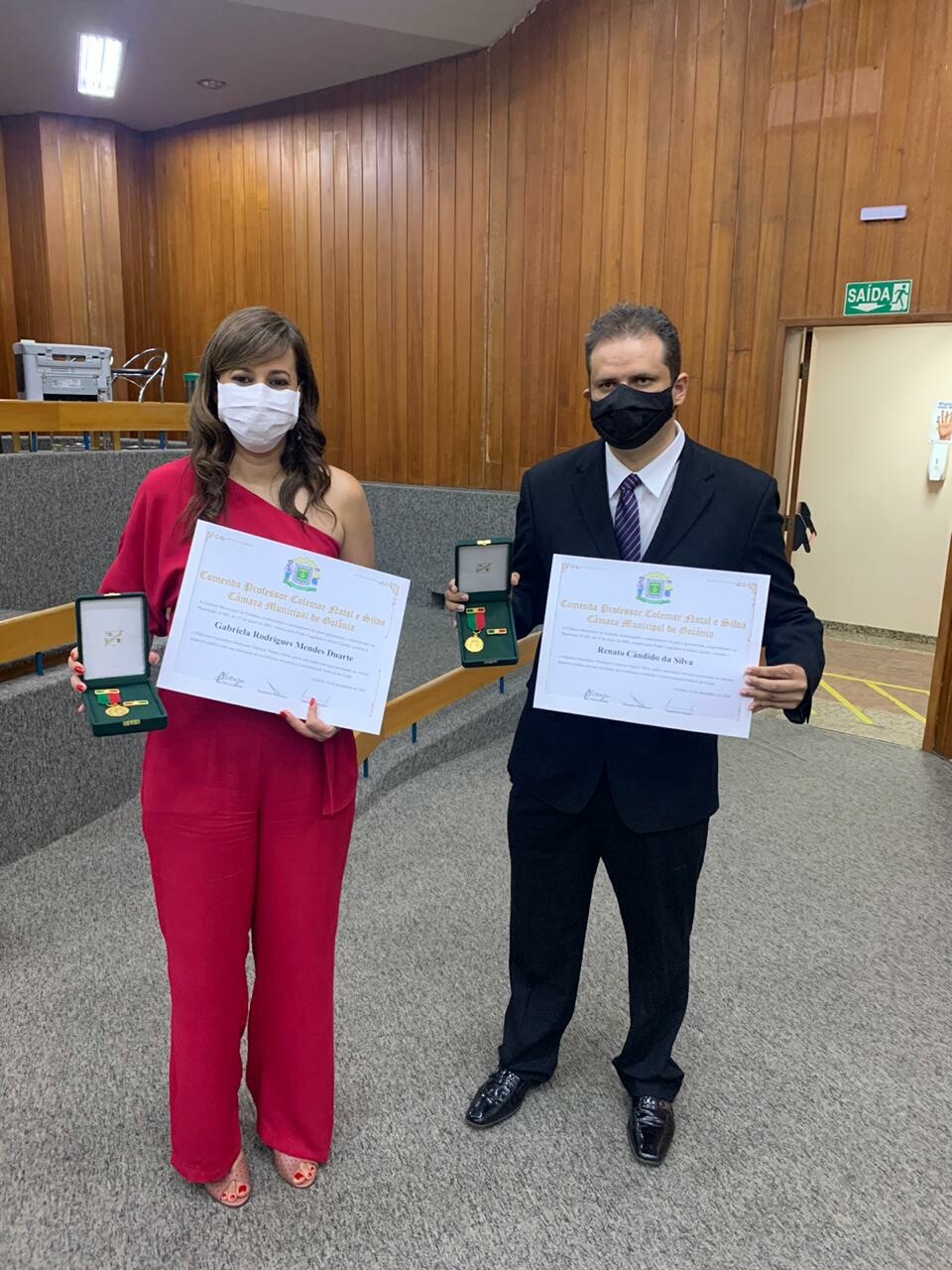 Profª. Gabriela Duarte e TAE Renato Cândido são homenageados na Câmara Municipal de Goiânia