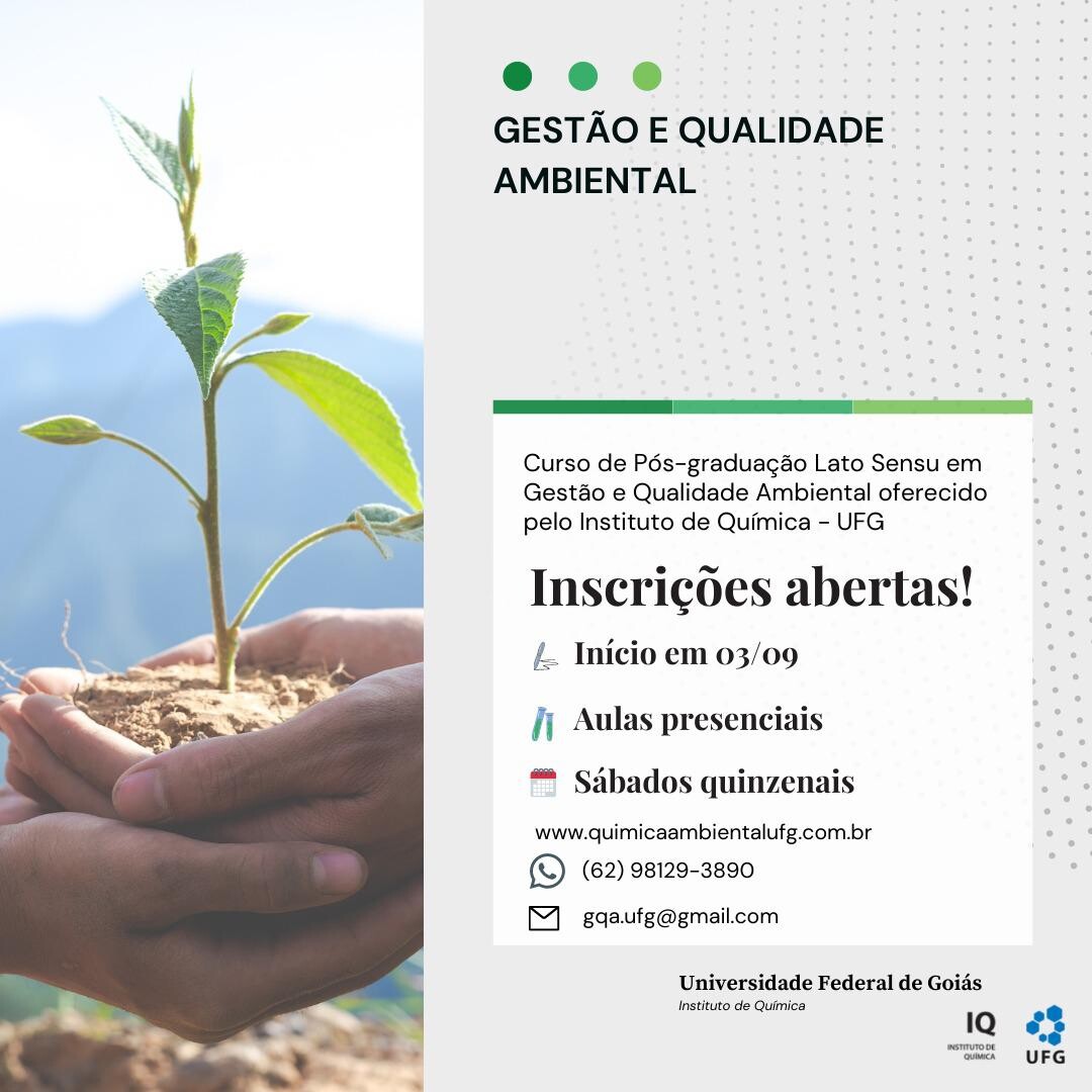 Curso de Pós-graduação Lato Sensu em Gestão e Qualidade Ambiental On 07/12/22 14:28 . Updated at 07/12/22 14:28 . Inscrições Abertas! Categories: Notícias Noticias Tweet List all Back