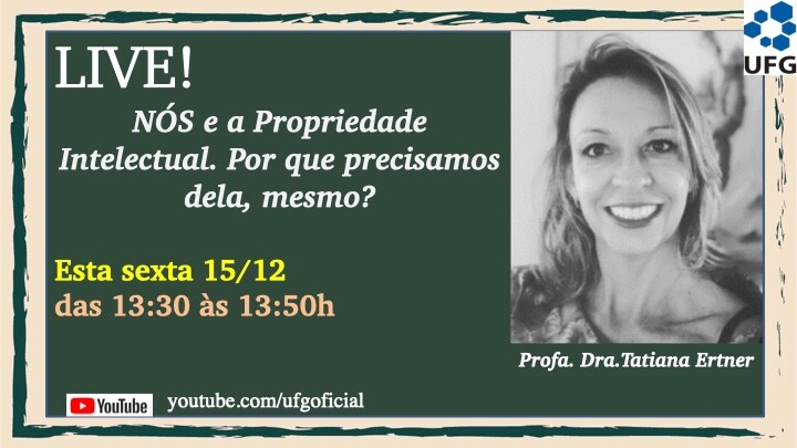 LIVE: Nós e a propriedade Intelectual Em 14/12/23 15:09. Atualizada em 14/12/23 15:45. Dia 15/12 às 13:30h, no YouTube da UFG Oficial Link: https://www.youtube.com/watch?v=NEAaQFvGjCw Categorias: NOTÍCIA Tweet Listar Todas Voltar